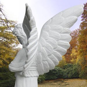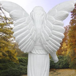 Meisterlicher Engel Grabstein aus Marmor: Diese Engelsfrau wird von unserem Bildhauer allseitig als vollplastisches Relief in edlem Marmor gefertigt. Der anmutige und bis ins kleinste Detail kunstvoll modellierte Grabengel ist ein würdiges Grabdenkmal nicht nur für ein Einzelgrab.