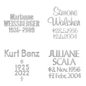 Zu jedem Grabstein-Angebot erhalten Sie von uns individuelle Beschriftungsvorschläge. Weitere Schriftarten sind auf Anfrage gerne möglich.
