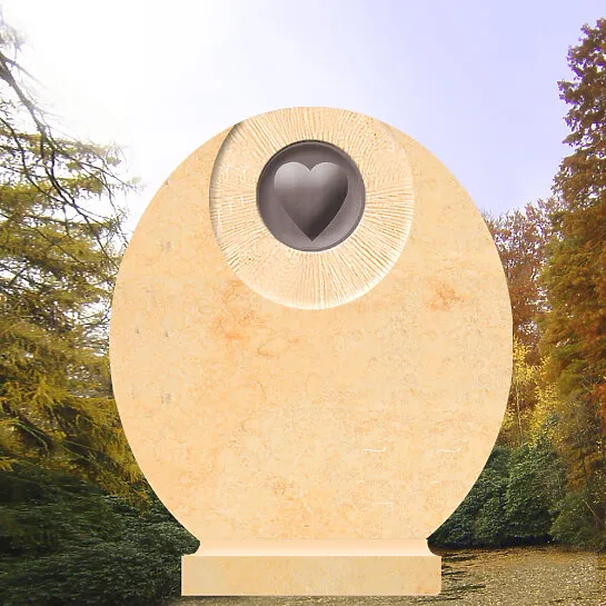 Dieser runde Urnengrabstein mit einem stilvoll im Kopfbereich eingefassten und liebevoll gestaltetem Herz aus edler Bronze ist ein würdevolles Grabdenkmal. Auf Wunsch können der Name oder die Initialen des Verstorbenen in das Bronze Herz eingearbeitet werden.