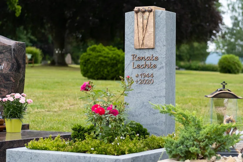 Gerne bieten wir zusätzlich zum Urnengrabmal auch die passende Grabeinfassung oder Umrandung aus Natursteinstein an. Übermitteln Sie uns hierzu einfach die Abmessungen des Urnengrabes um ein passgenaues Kosten-Angebot unterbreiten zu können. Sofern Sie eine pflegeleichte Urnengrabgestaltung wünschen, ist auch eine Abdeckung des Grabes mit Natursteinplatten oder Kies möglich. In unserem Grabschmuckshop bieten wir darüber hinaus ein breites Sortiment an Grablaternen, Grabvasen und Grabschalen aus Bronze, Edelstahl und Aluminium an. Gerne unterbreiten wir Ihnen in Ihrem individuellem Grabsteinangebot Beispiele für den passenden Urnengrabschmuck für unsere Urnengräber an.