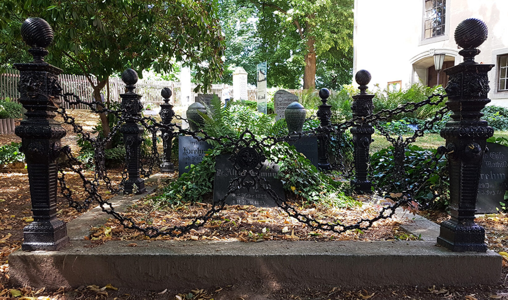 historische Familiengrabanlage mit Grabstein des bekannten Zoologen und Schriftstellers Alfred Brehm (1829 - 1884)