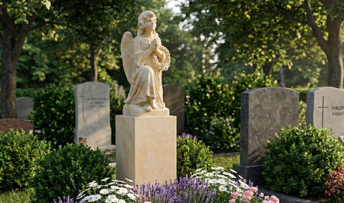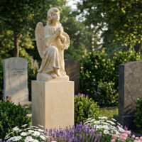 - Kindergrab: Kindergräber sind besonders sensibel und oft mit speziellen, kindgerechten Elementen gestaltet. Bunte Blumen, kleine Statuen wie Engel oder Tiere und kindliche Dekorationen wie Spielzeuge sind typisch. Die Gestaltung soll Trost spenden und das kurze Leben des Kindes liebevoll ehren. Es wird oft eine weiche und helle Farbpalette gewählt.